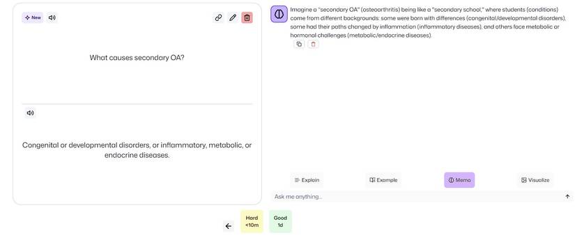 The flashcards that FlashKa generates are simple yet effective. You can edit them on the spot or click the link icon to go to the source material for additional context. After viewing a flashcard, you can mark it as either Hard or Good. FlashKa uses a spaced repetition system to ensure that difficult cards are reviewed more frequently, while easier cards are scheduled for review at later intervals, optimizing the learning process.