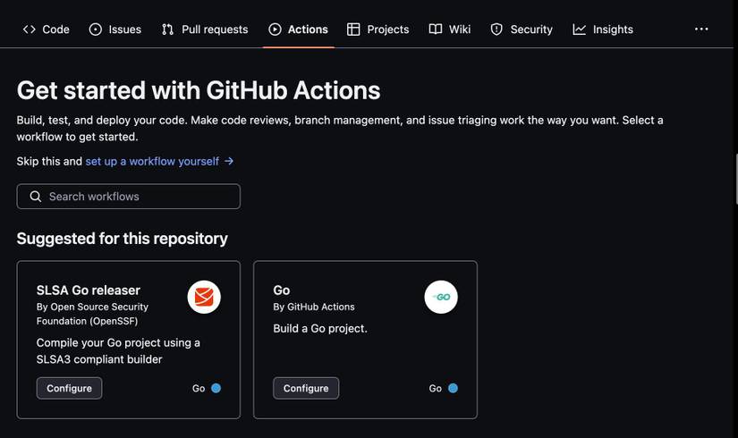 If this is your first time accessing GitHub Actions for the repository, you will get a prompt to set up a workflow. Choose an appropriate workflow template or create a new one from scratch.