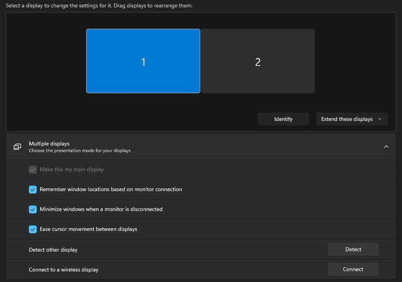The software will automatically detect your connected monitors and create a single, large display. Your monitors might turn off and on a couple of times. You can go back to two separate displays by clicking Discard setup.