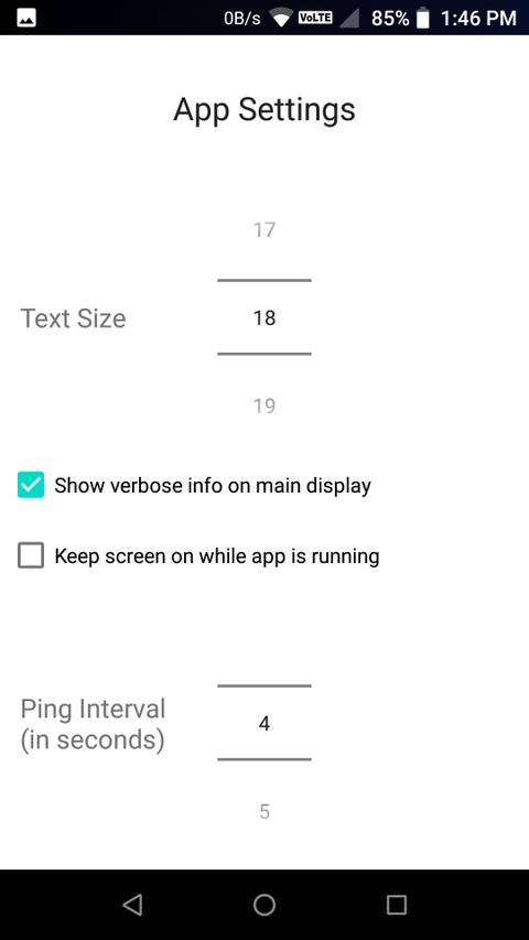 Ping Monitor Pro does not need additional permissions and has minimal settings. For example, you can adjust the Text Size to fit more data in one viewport and change the Ping Interval according to the needs.