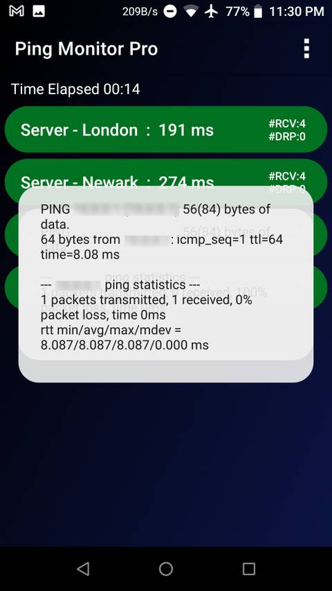 By default, the app displays only the latest ping time. However, a single tap shows more data, as seeing the average ping time is an important server monitoring stat.