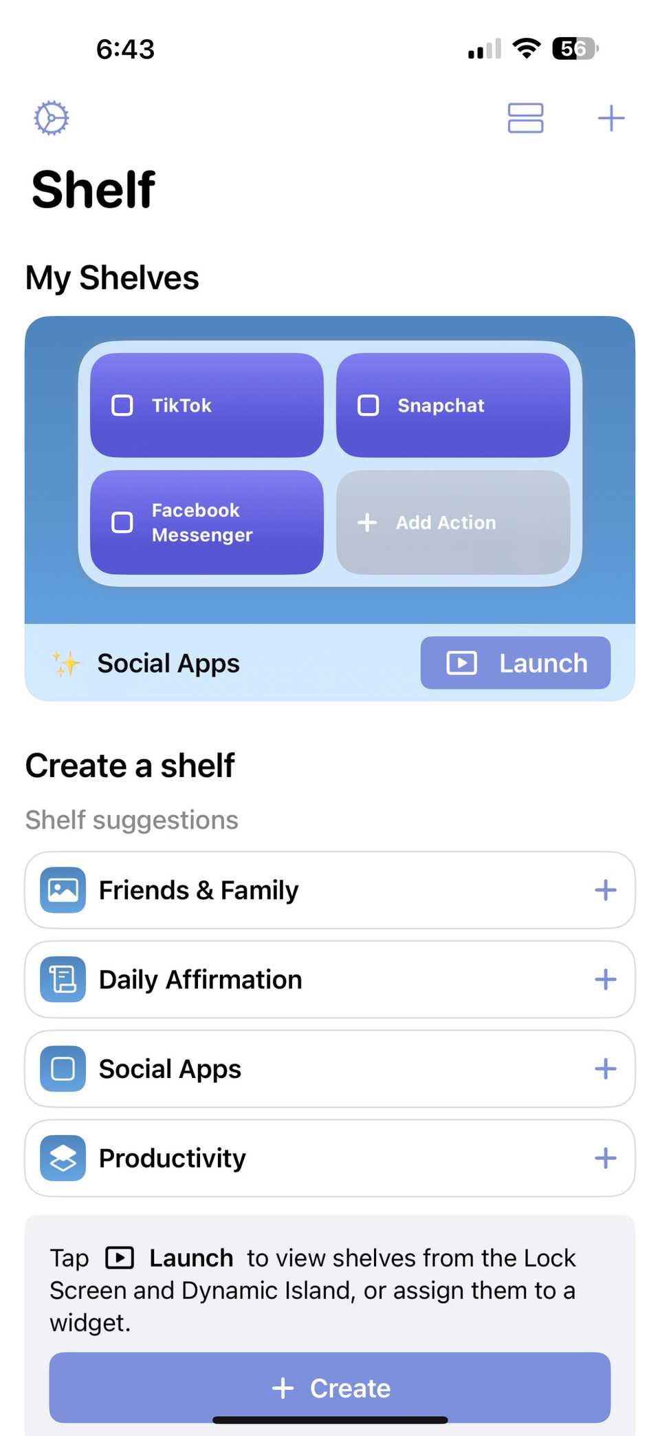 With Shelf, you can create a shelf that displays a photo or text. You can also create one that provides quick shortcuts to specific apps or event sites. You can customize each shelf with a variety of colors and fonts to make them unique.