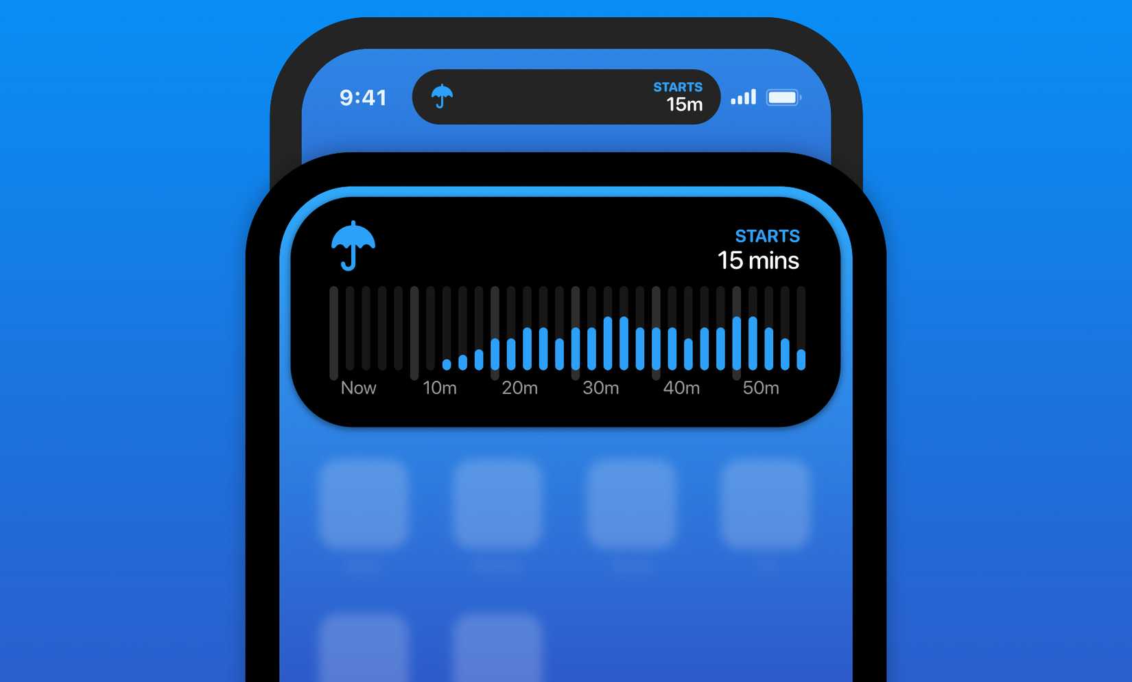 Carrot Weather can help keep you one step ahead of both rain and snow. The app constantly works in the background, checking for precipitation and other weather-related changes at your location. If the skies are about to turn gray, the Dynamic Island will let you know. You can long-press the Dynamic Island to see a precipitation chart for the next hour, which shows you how heavy the rain or snow will be. It will then be visible until the rain stops.