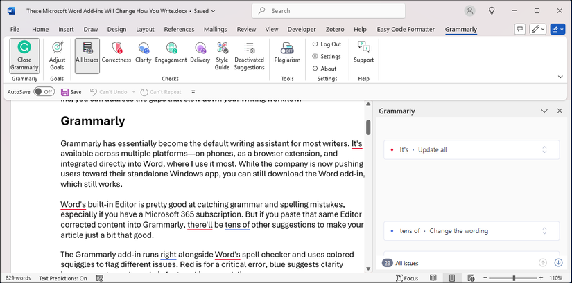 Grammarly has become the default writing assistant for most writers. It's available across multiple platforms—on phones, as a browser extension, and integrated directly into Word, where I use it most. While the company is now steering most writers toward their standalone Windows app, you can still download the Word add-in, which works just fine..