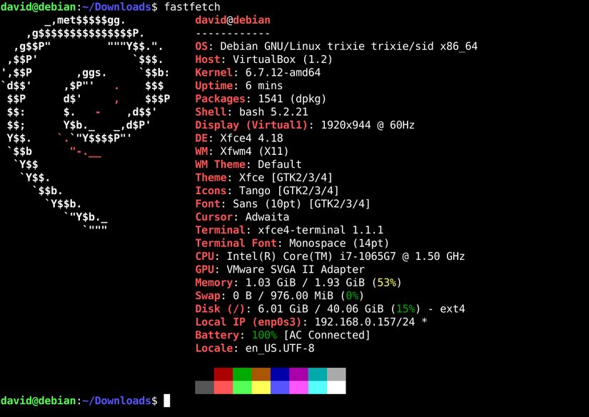But the most popular feature is the display of the OS logo in ASCII art. This is what makes Neofetch so popular for making screenshots; ASCII art just looks cool.