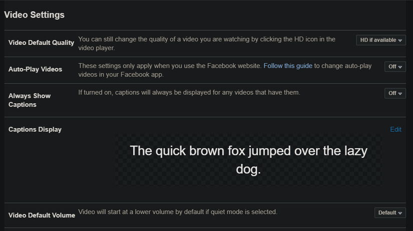 To turn off auto-play for videos on Facebook, click your profile picture again and choose Settings & privacy > Settings. Click the Videos tab on the left, then set the Auto-Play Videos option to Off.