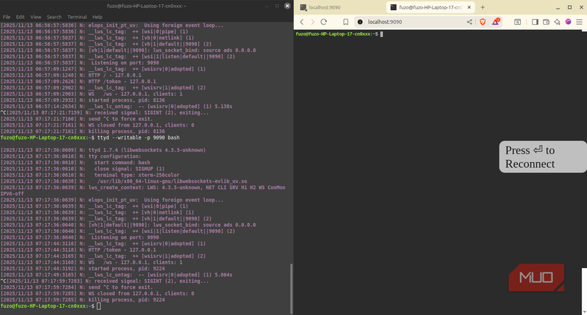 I've talked about how easy it is to share the shell using ttyd. However, what surprised me the most was how versatile the tool became as soon as I started experimenting beyond basic command-line sharing. I can pipe script output to it and use it to expose log monitors. It even lets me create minimal dashboards for services running on a headless system.