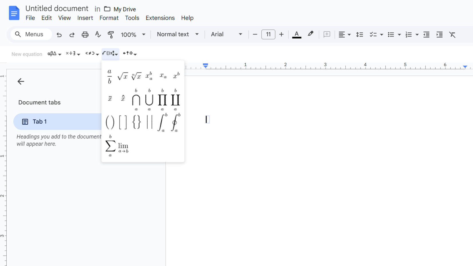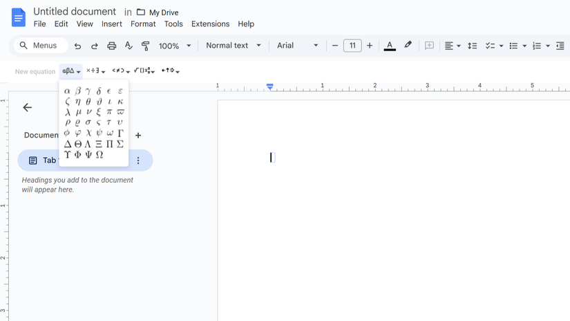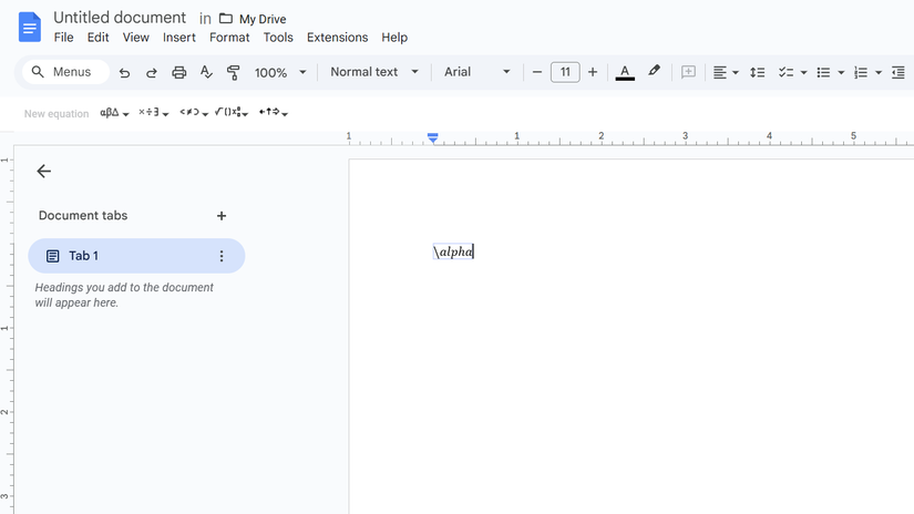 Google Docs offers a handful of keyboard shortcuts for equation editing, such as using a backslash (\) followed by a symbol name to insert it quickly.