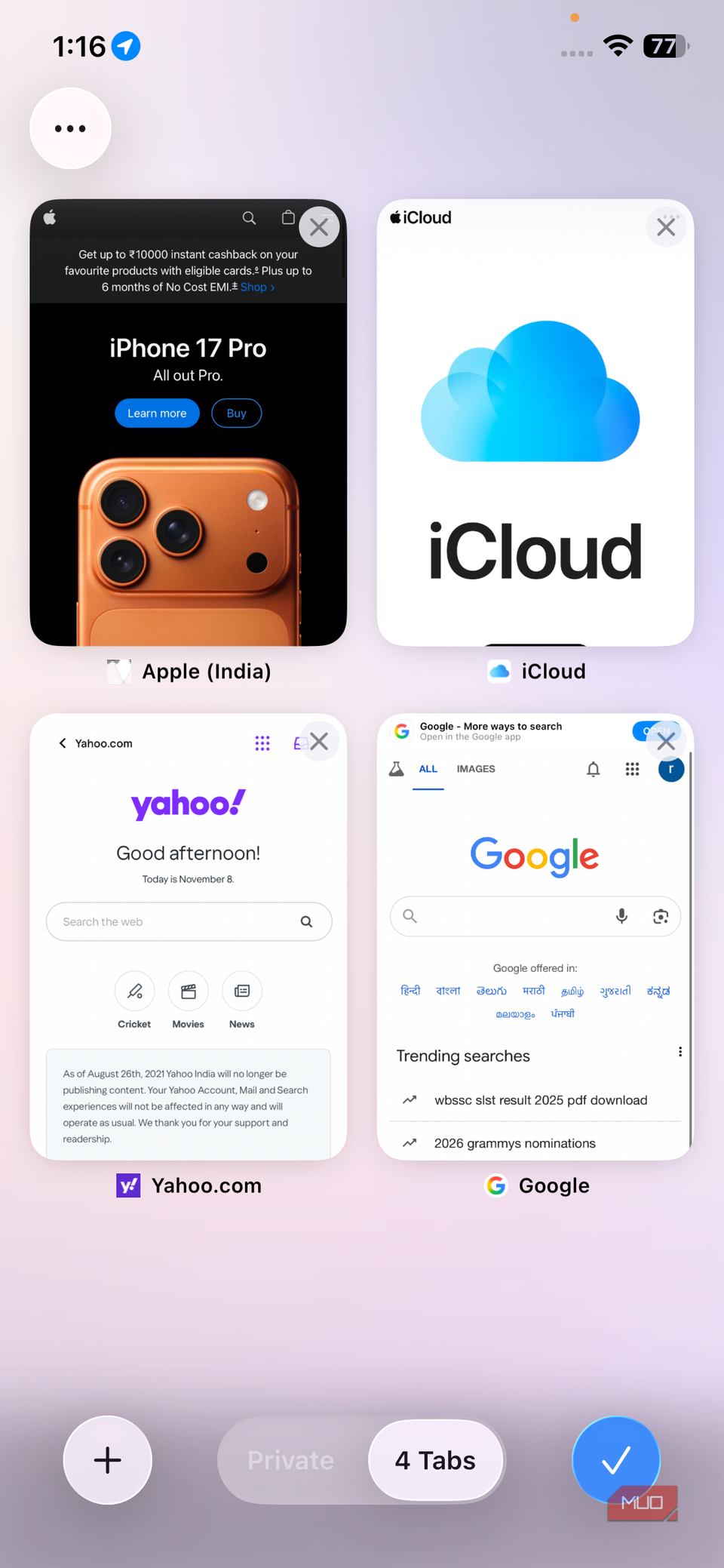 Safari also hides a couple of clever shortcuts in plain sight. Tap and hold the + button in the tab view, and you’ll see a list of your recently closed tabs. It’s a lifesaver for those "wait, I didn’t mean to close that!" moments. And if you tap and hold the "tick" button, you get the option to close all tabs at once.