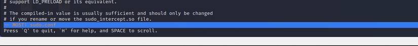 For this example, we will use the sudo.conf file found in the /etc folder. To use the more command to view a file, execute this command:
