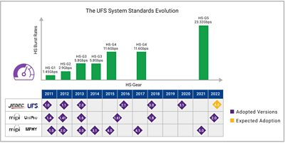 UFS, the popular standard for data storage in mobile devices, has also emerged as the most suitable option for large and fast storage requirements in the modern automobile. UFS currently offers storage capacities up to 1TB. The standardization bodies (JEDEC and MIPI) have been evolving the data-rates and capabilities of UFS standard over the last decade.