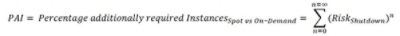 This percentage of additional demand for instances (PAI) describes the ratio of the number of Spot Instances to the number of On-Demand Instances for a complete test run and can be sufficiently approximated with the following formula: