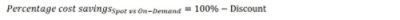 With an assumed discount of 80%, the percentage cost savings is 20%. In other words, operating a Spot Instance costs only one-fifth of the operating cost of an On-Demand Instance.