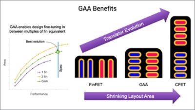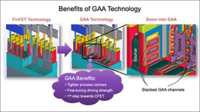 For several generations of semiconductor technology, chip designers have derived great benefit from FinFETs, the three-dimensional field-effect transistors (FETs) marked by their thin vertical fins. However, the industry is now running into the limits of how much we can further shrink FinFETs, whilst extracting the speed and power benefits, which are needed for compute-intensive applications like artificial intelligence (AI) and machine learning (ML). Enter the gate-all-around (GAA) transistor architecture, which extends device scaling while increasing chip performance and reducing power.