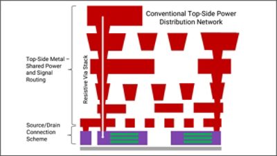 Figure 3: This diagram depicts a conventional top-side power distribution network. (Source: Synopsys)