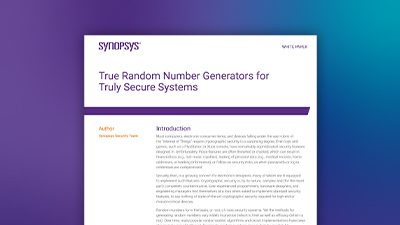 A True Random Number Generator (TRNG) is a hardware-based generator that produces unpredictable random numbers, needed for virtually all cryptographic functions and secure communications. Synopsys is a world-wide market leader for certified TRNG IP solutions. Learn more about the importance of TRNGs for your digital systems in this White Paper.