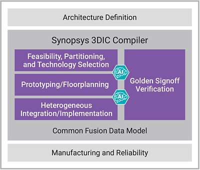 Synopsys 3DIC Compiler platform enables efficient multi-die/advanced package co-design and optimization for 2.5D and 3D multi-die designs. In a single environment, the platform enables analysis-driven feasibility exploration, partitioning, prototyping, and floorplanning for comprehensive full-stack designs. In addition, the platform accelerates advanced packaging design with automated high-speed die-to-die routing, multiphysics analysis, and signoff verification. 3DIC Compiler integrates with Ansys® RedHawk-SCTM, RedHawk-SC Electrothermal, and HFSS to enable automation and optimization for multiphysics analysis including power and signal integrity, thermal, and mechanical stress. In addition, the platform uses AI capabilities to maximize system performance and quality of results at a rapid pace. The 3DIC Compiler platform, adopted by leading HPC/AI customers, is certified by major foundries for advanced process and packaging technologies.