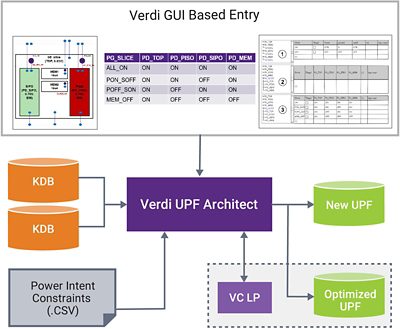 Built upon the Synopsys Verdi® advanced debug platform, Verdi UPF Architect provides an automated flow to create and optimize the UPF from IP to SoC. Verdi UPF Architect facilitates a single golden power intent allowing the designer to generate UPF meeting various tool requirements in the flow. The user does not have to be an expert in the syntax and semantics or the evolving UPF standard for all tools in the flow. The generated UPF can also be further optimized using the Synopsys VC LPTM static low power verification solution.