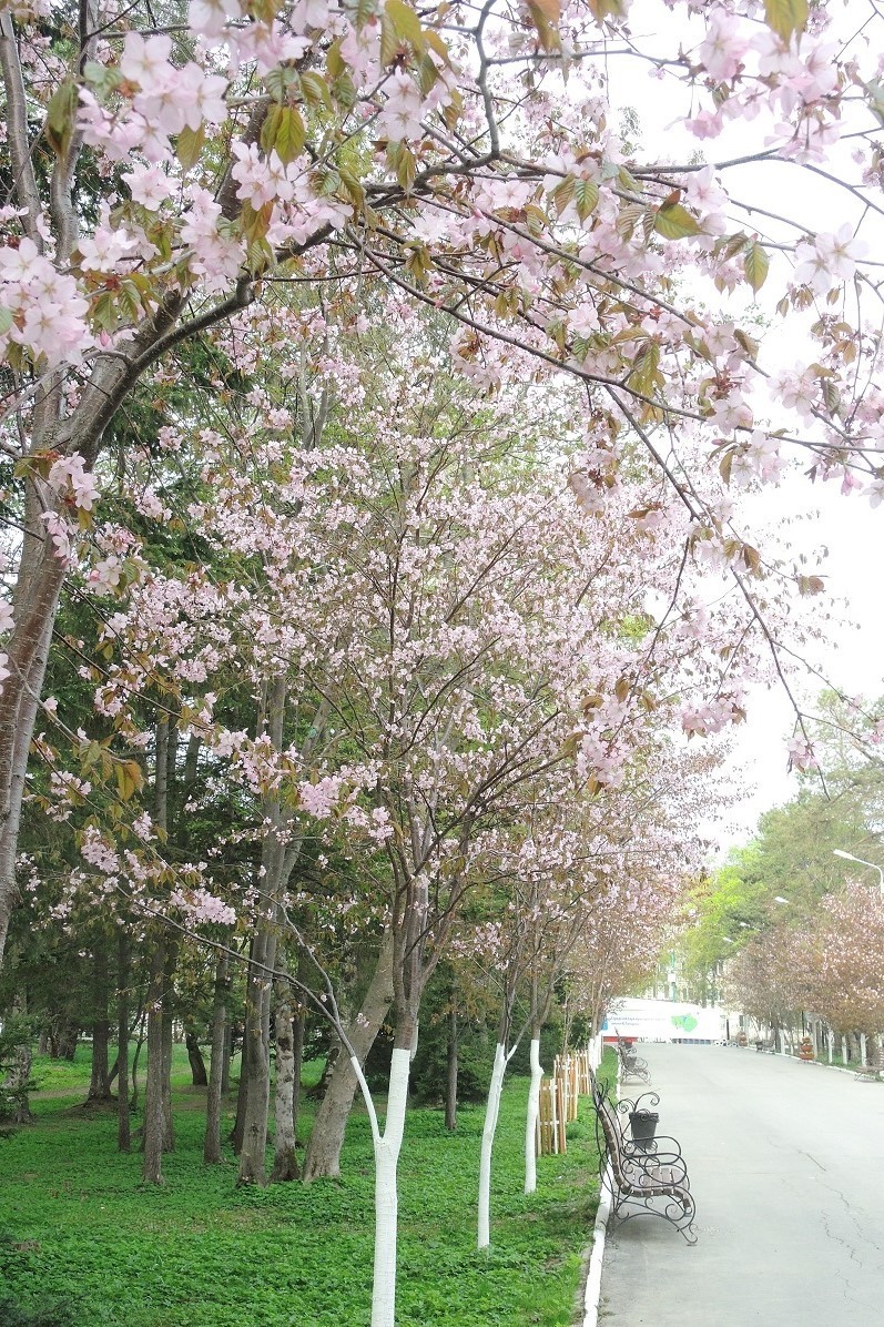↑チェーホフ像の脇に桜が植えられています。ここの花も、何時の間にか咲いて、直ぐに葉が目立つようになり、早くも散りかけな感じです。