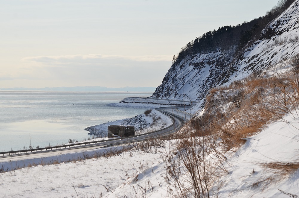 (注記) 海を渡る冷たい風が抜け、雪も積もる海岸部の様子です。