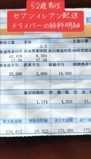 titleicon 52歳のコンビニトラックドライバーの給与明細wwwwwwww