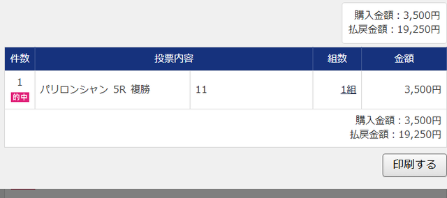 爆勝ちとかいうから3連単でも当てたのかと思ったら単勝と複勝か