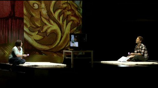 テレビの前で本を開き、PSmoveのカメラを通じてアクションを取る