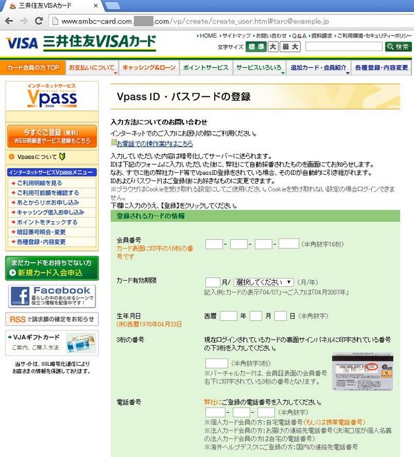 うちに来たメール経由で閲覧したSMBC VISAのフィッシングサイトですが、