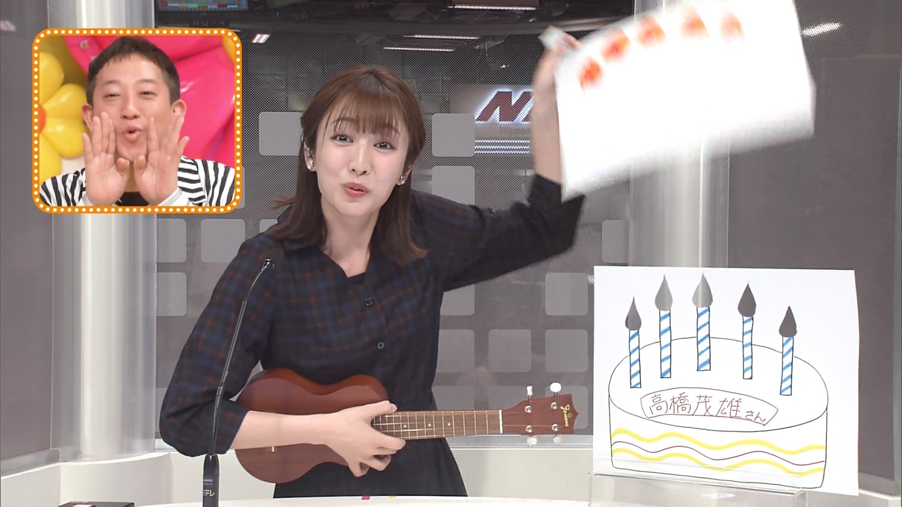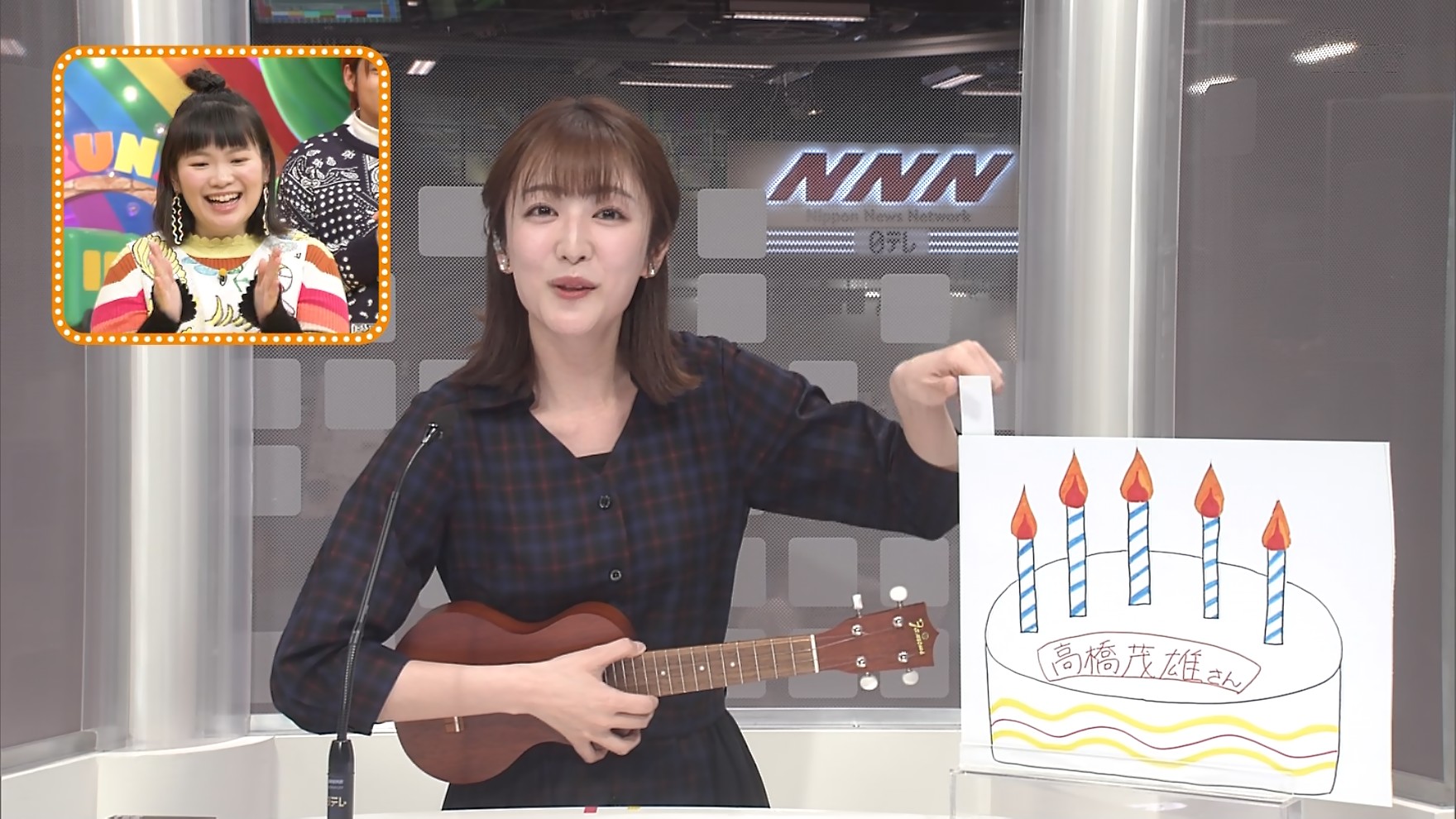 【画像】日テレの滝菜月アナがウクレレをおっぱいに乗せて演奏してしまう