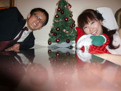 サンタマンを間にピアノ岸本氏と共に超豪華控室にてパチリ