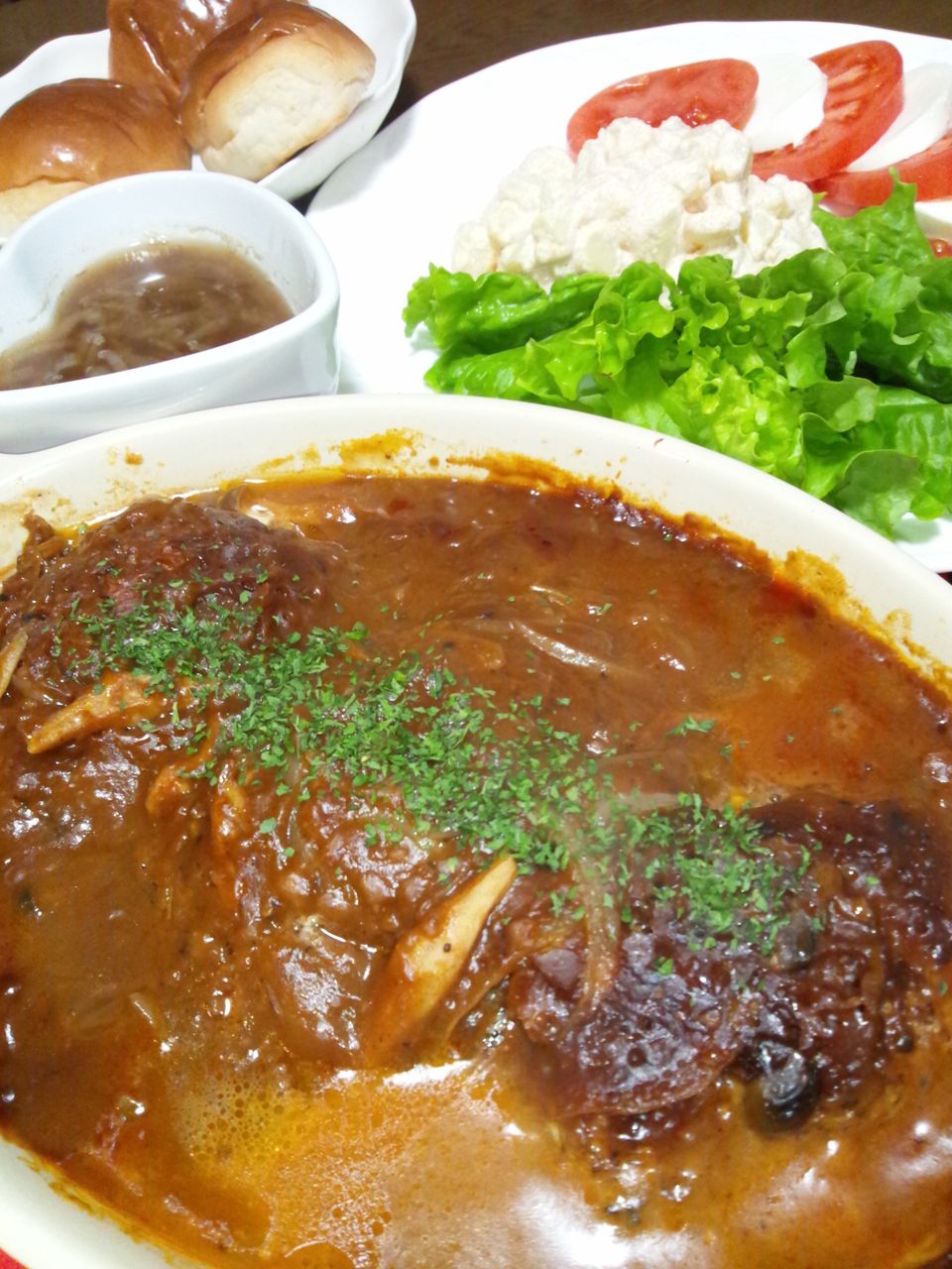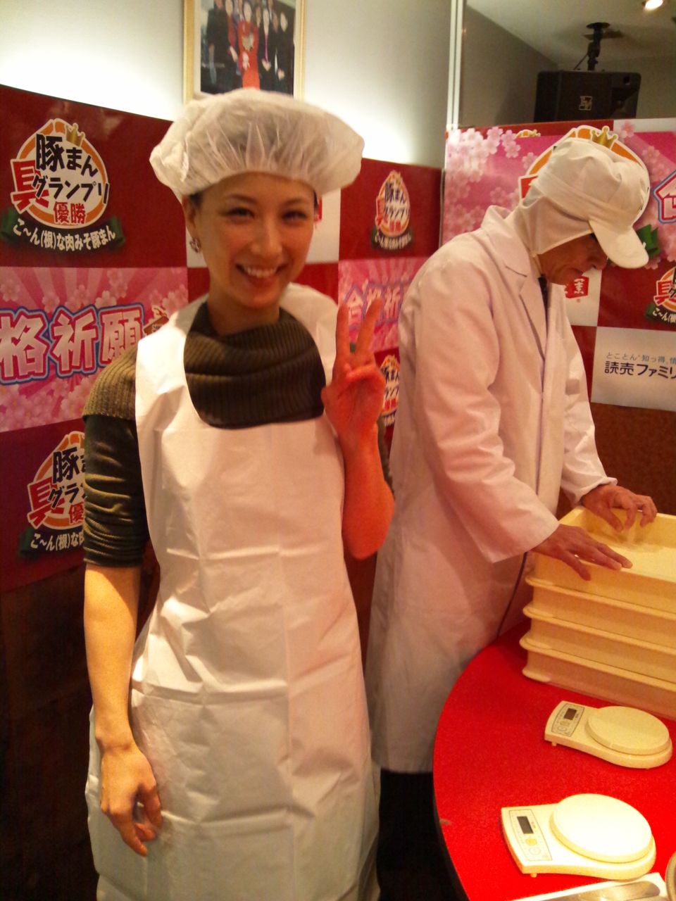 エプロン、帽子をして、お料理教室のスタッフと共に