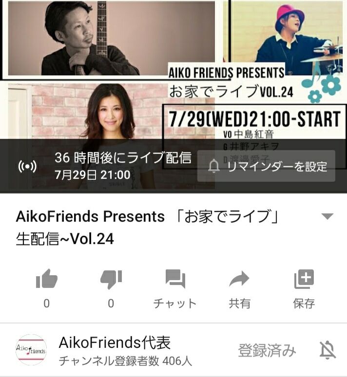 明日7月29日(水)21時〜生配信お家でライブに挑戦いたします。