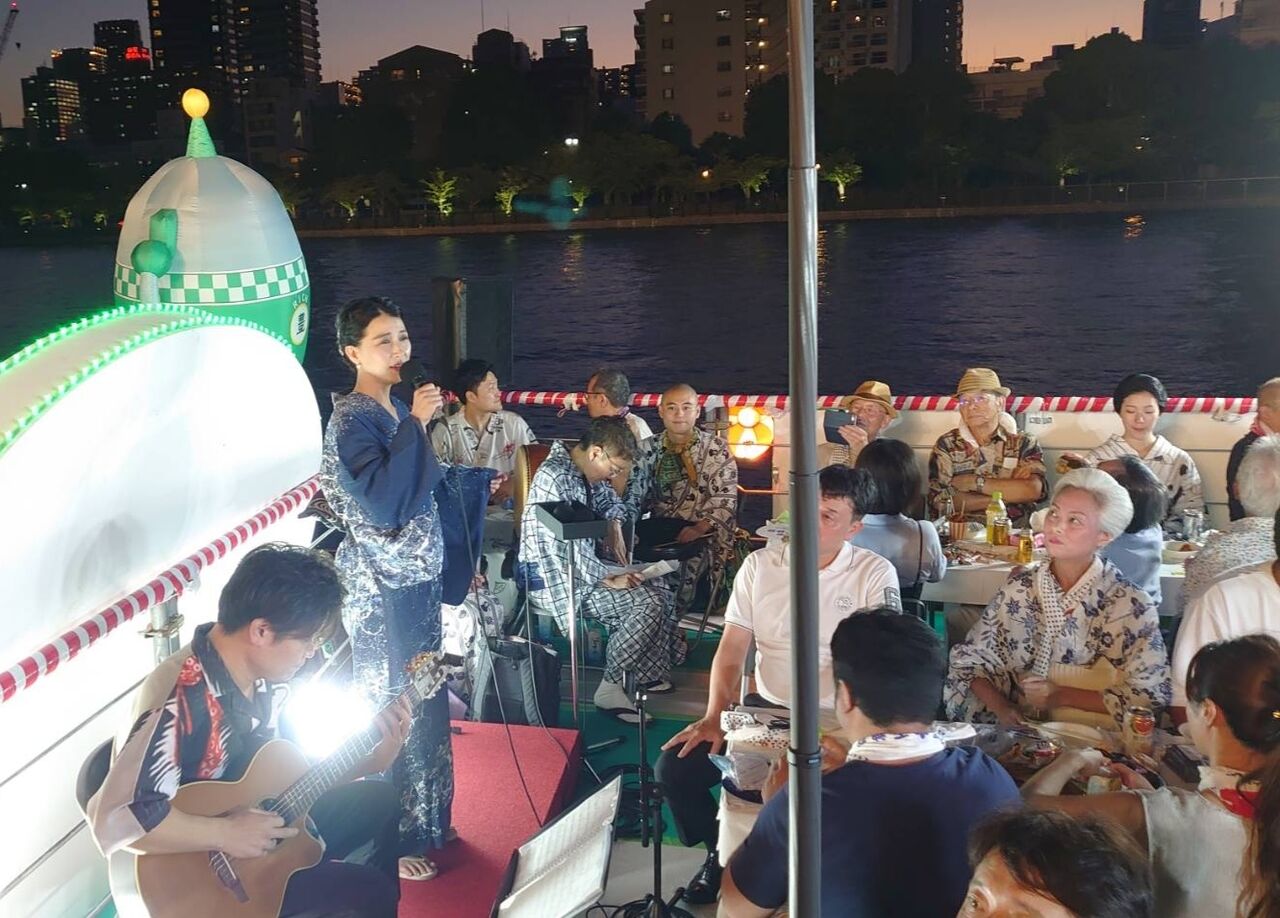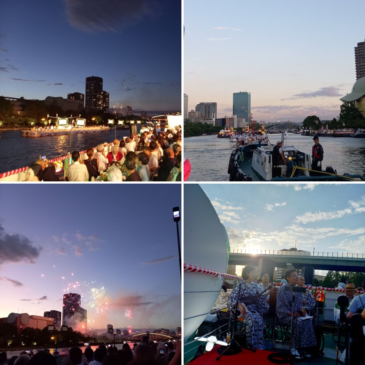 日本三大祭の一つ、天神祭の船渡御、拝奉船での演奏でした。