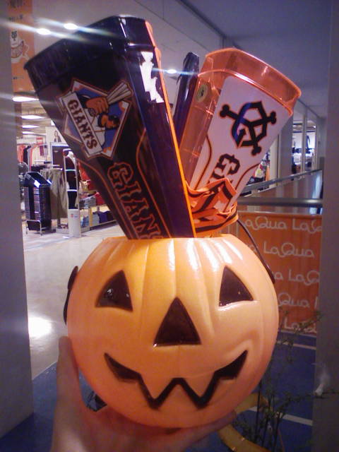余談:ディスプレーがハロウィンと巨人グッズ混合になっていますが、両方オレンジ・黒なのであまり違和感がありません。ささやかな発見でした。