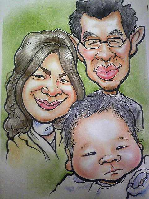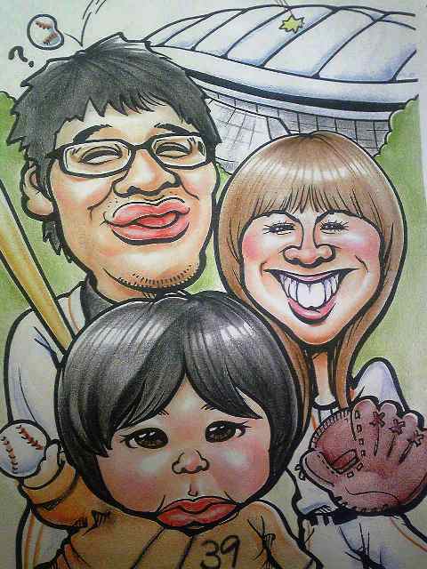新しい料金メニュー用にサンプル画を描きました。スタンダードな顔のみサンプルと、東京ドーム入りの背景付きコースです。背景付きコースのお父さんはちょっと弊社のN尾さん風です(妻子は捏造です)。
