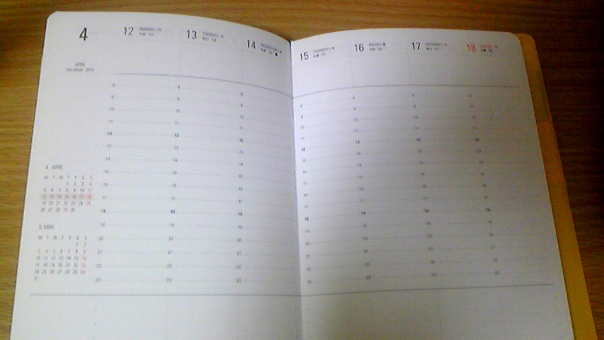しばらくほぼ日手帳(一日一ページ)を愛用していたのですが、もっと一覧性が欲しくなり、週間バーチカル(縦割り)タイプにしました。