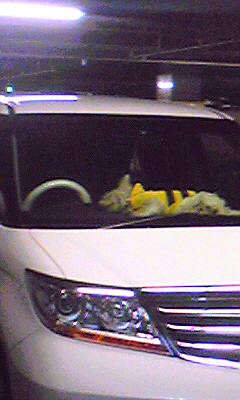 ダッシュボードの上で寝ます