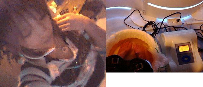 ヾ(~∇~;) コレコレ酸素吸入しながらデトックス足浴してるトコ( ?∇+ ?)v