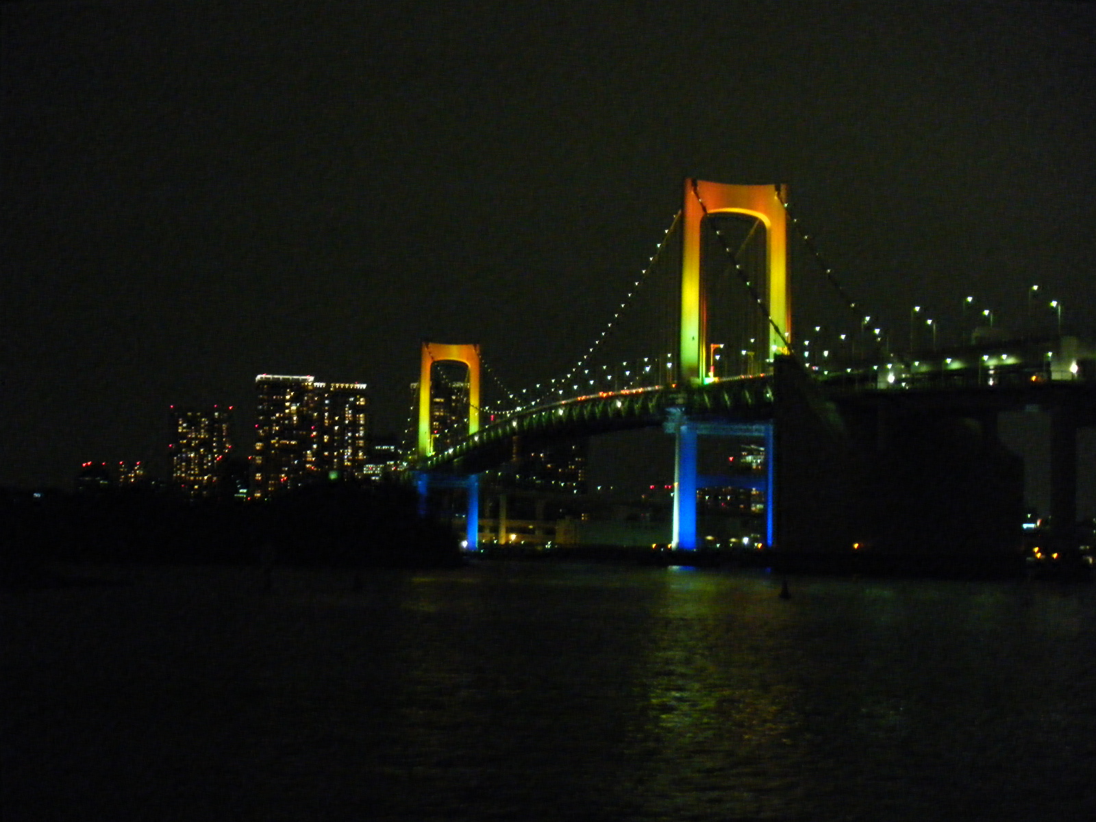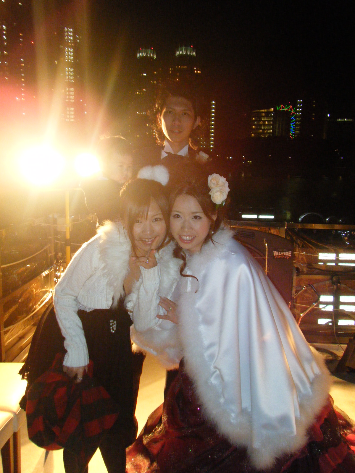 挙式をしてから披露宴は船に移動してのディナークルーズで、東京湾を航海中ちょうどレインボーブリッジの下を通る時にキレイにライトアップされてたのでパシャリ( ?ー*`)