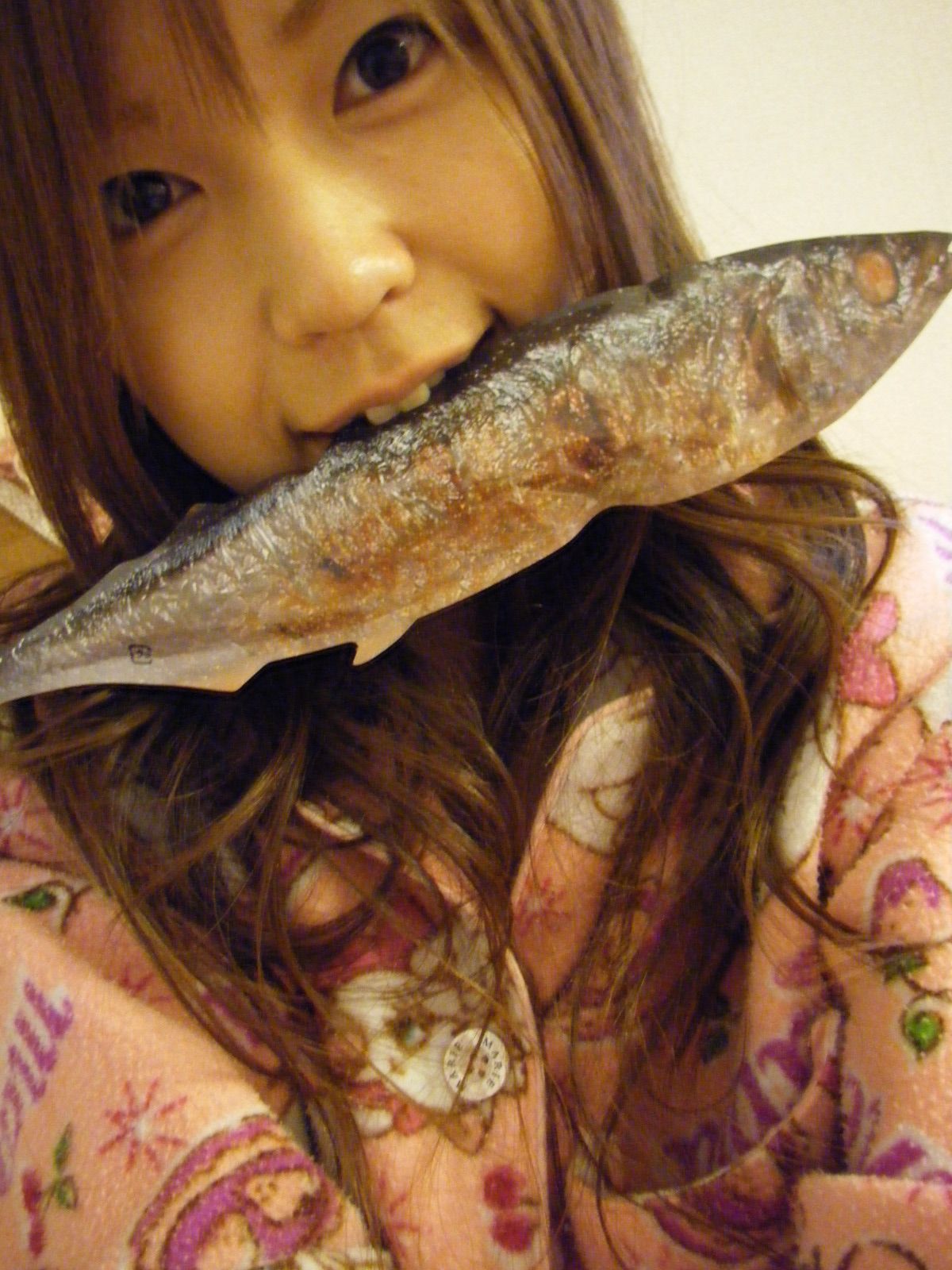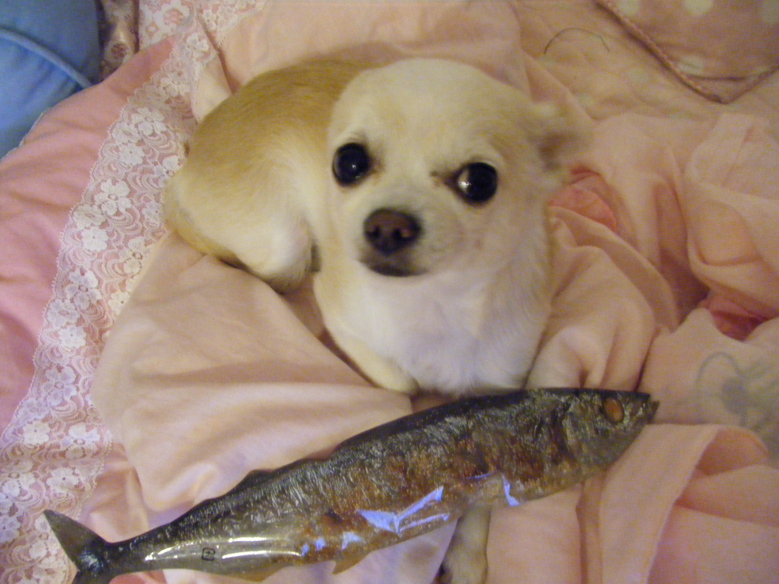 念の為説明・・・『うわぁ (?┏Д┓? ;)葵ちゃんが生魚をベッドに置いてさらに丸呑みしてやがる』・・・と誤解されてるかもなので、この魚は中にチョコレートが入ってるおもしろチョコで、実際の魚君ではないでしゅ