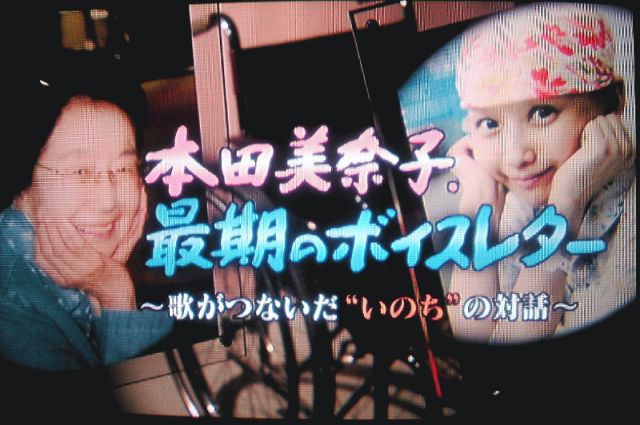同じく24日19時半からは「本田美奈子.最期のボイスレター〜歌がつないだ"いのち"の対話」が先日BSデジタルで放送されたのが短縮されNHK地上波で放送されます。BSデジタルで見たかったですがまだ買える状態ではないです。来週は夜勤なのでビデオ録画して見たいと思います。明日は個人情報保護士認定試験(10:15〜12:15)に渋谷でBクワドラントセミナー(18:00〜20:00)参加で忙しくなりそうですが最後のお勉強頑張ります。