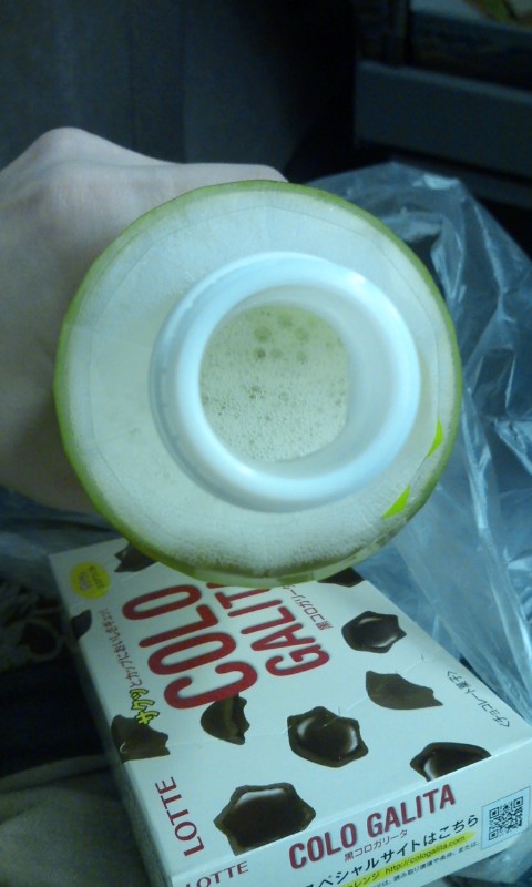 写真は 間に合ったやまびこ号の中で飲んだ持ち歩いていたお茶 走ったのでかなり泡立ってます