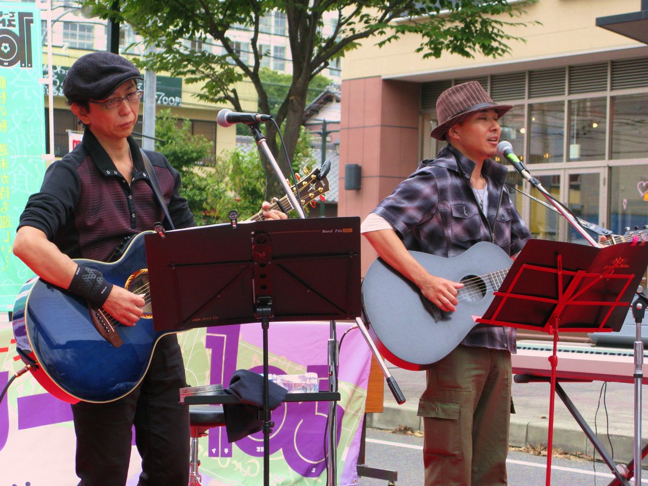 こちらも2回目出演。お二人は、1年前の同じ場所で開催した第2回藤on♪の時に「沼津を音楽で盛り上げたい。藤on♪を見学させてください」と足を運んでくださったのがきっかけで、沼津と藤枝、沼津と川崎の音楽シーン作りで大変お世話になっている、村長と山さん。二人のどこか懐かしいハーモニーが今回も藤枝に響き渡っていました。