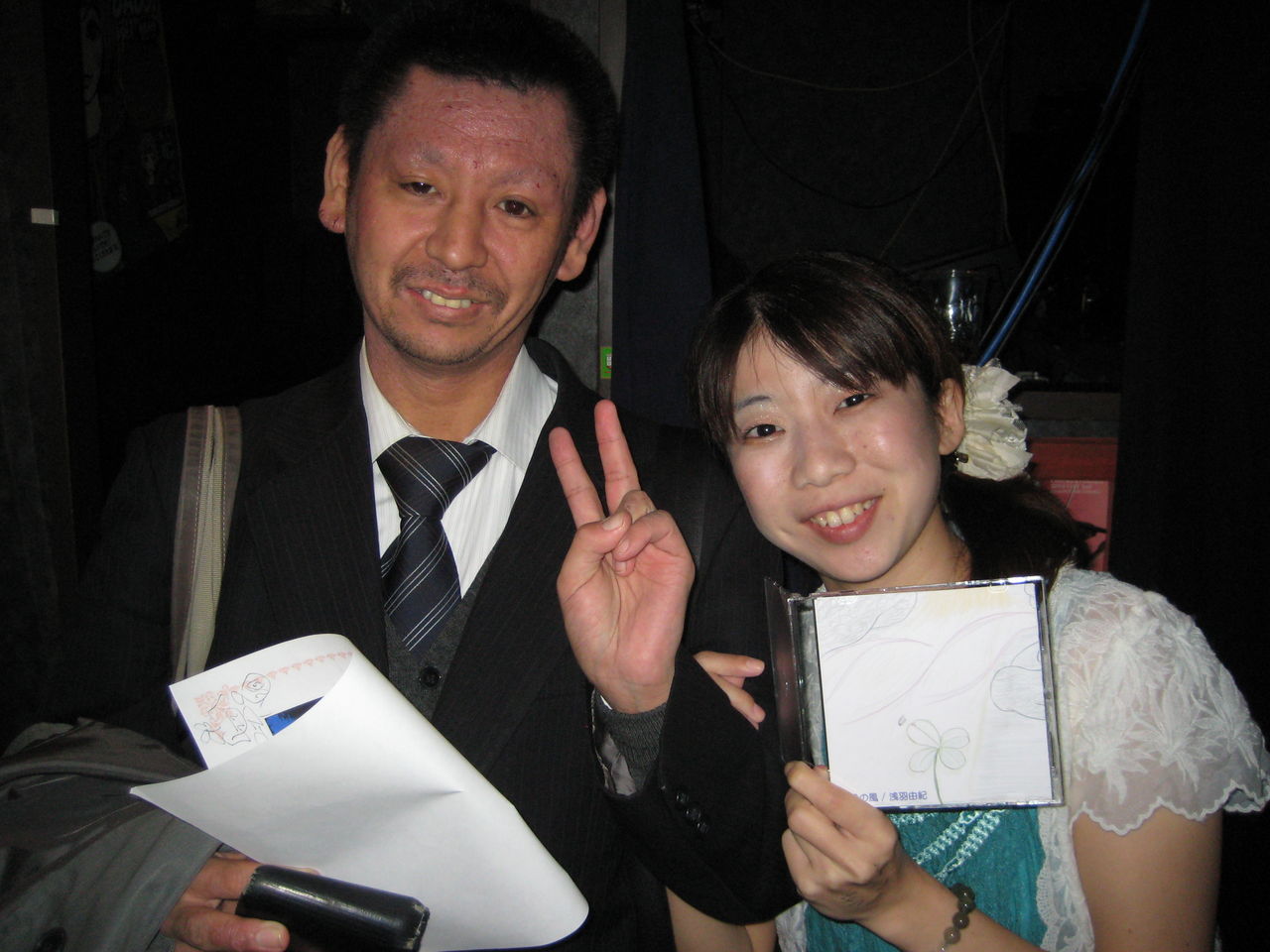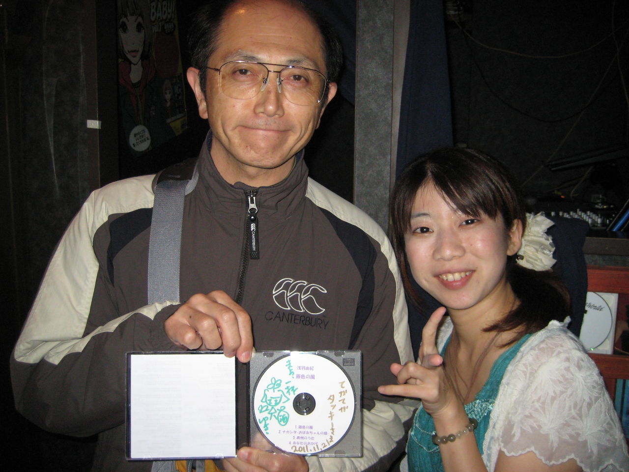 葉月ちゃんのファンの方ですが、まさに兄貴!まだ歌を聞いてない段階で、頑張ってるからとCDご購入くださいました。葉月ちゃんのCDに関しては在庫全部買うよ!という兄貴ぶり。打ち上げにもお越しくださり、いろいろお話させて頂きました。お茶が好きだとおっしゃっていたので静岡のお茶を差し上げたんですが、お味はどうだったんでしょうか♪