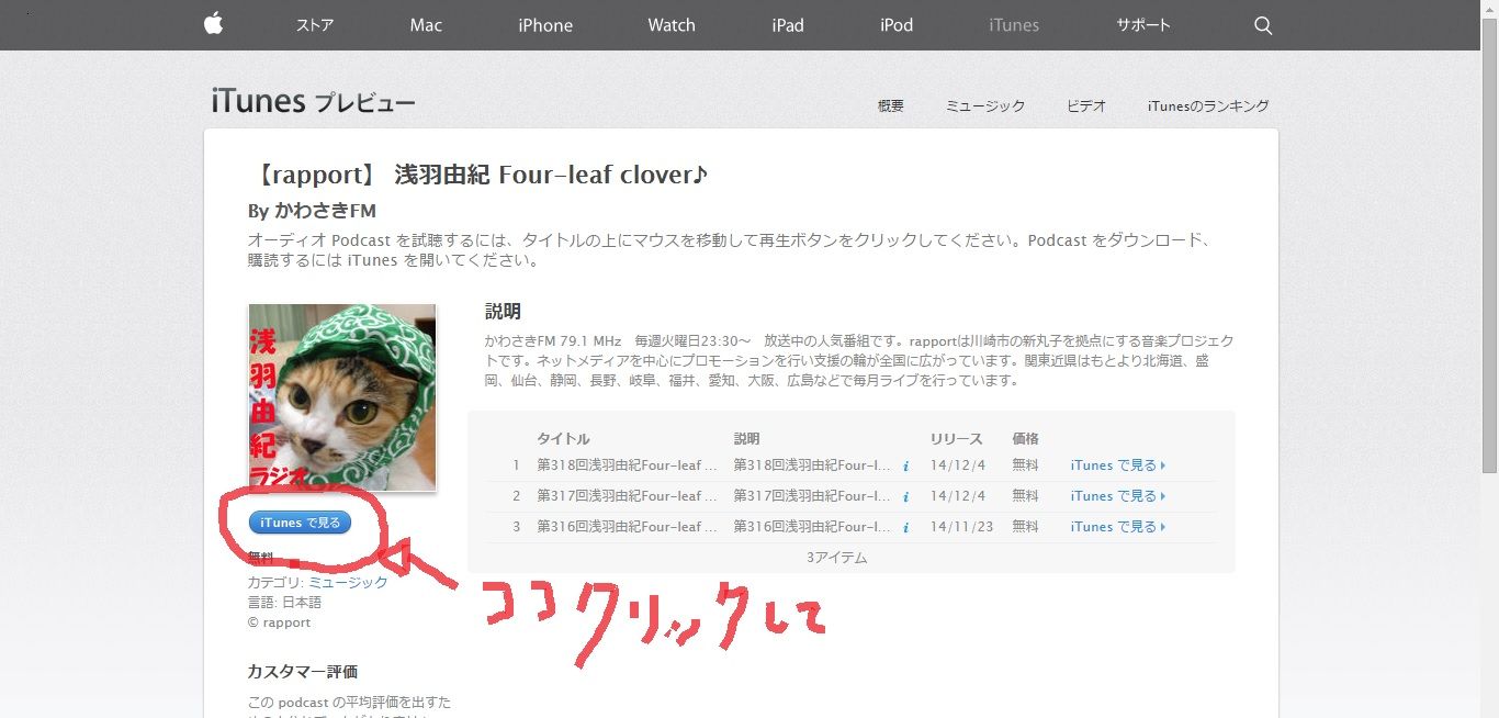 ■しかく次にこちらをクリックしてiTunes 浅羽由紀の番組のページへGO!!!