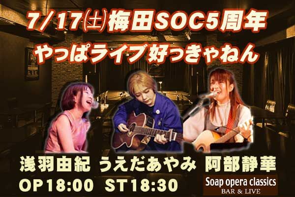 特別ライブ 7/17㈯梅田SOC18:30〜