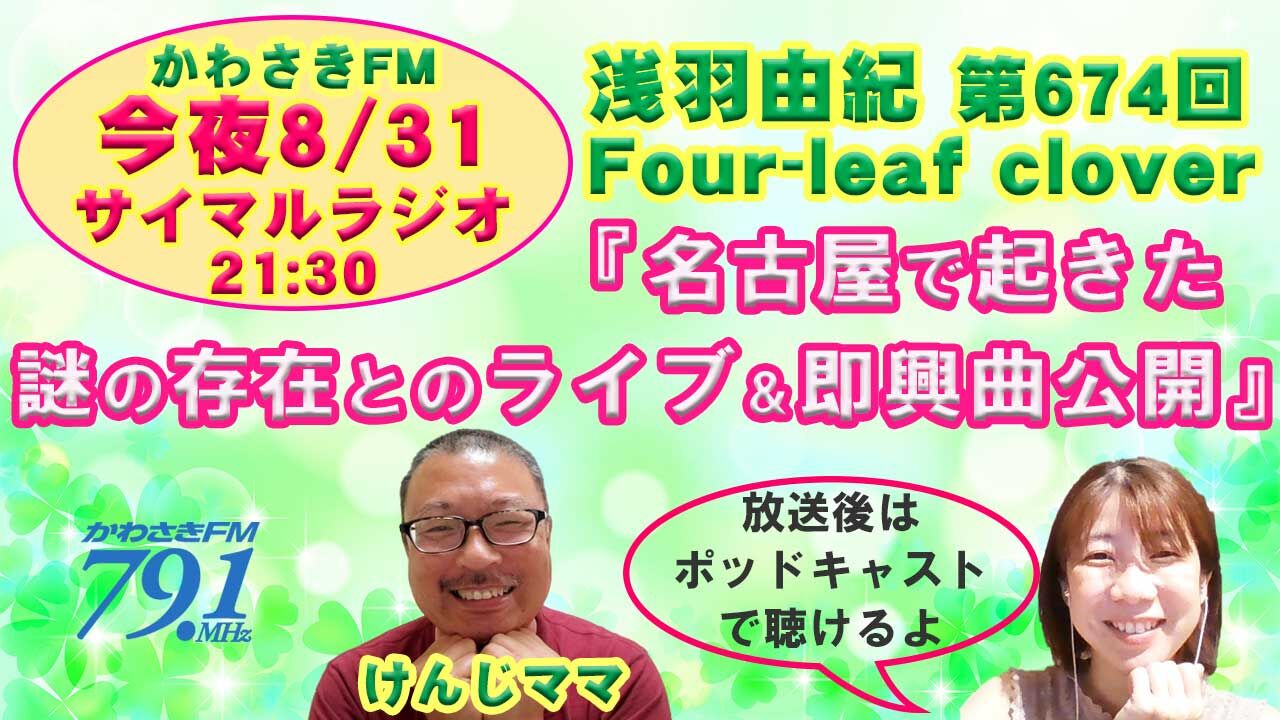 【 ★今夜8/31(火)21:30〜FMラジオ放送 】『 名古屋で起きた謎の存在とのライブ&即興曲公開』■しかくかわさきFM「浅羽由紀Four-leaf clover♪」■しかくネットで聴ける♪
