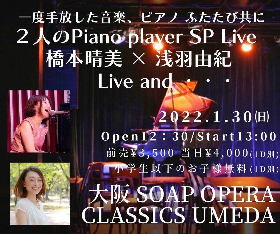 【 今週末は大切なライブ☆新曲披露! 】★1/30㈰昼 ×ばつ浅羽由紀 2人のPiano Playerによるピアノを愛でるSPライブ〜<現地・配信ご予約受付中♪>