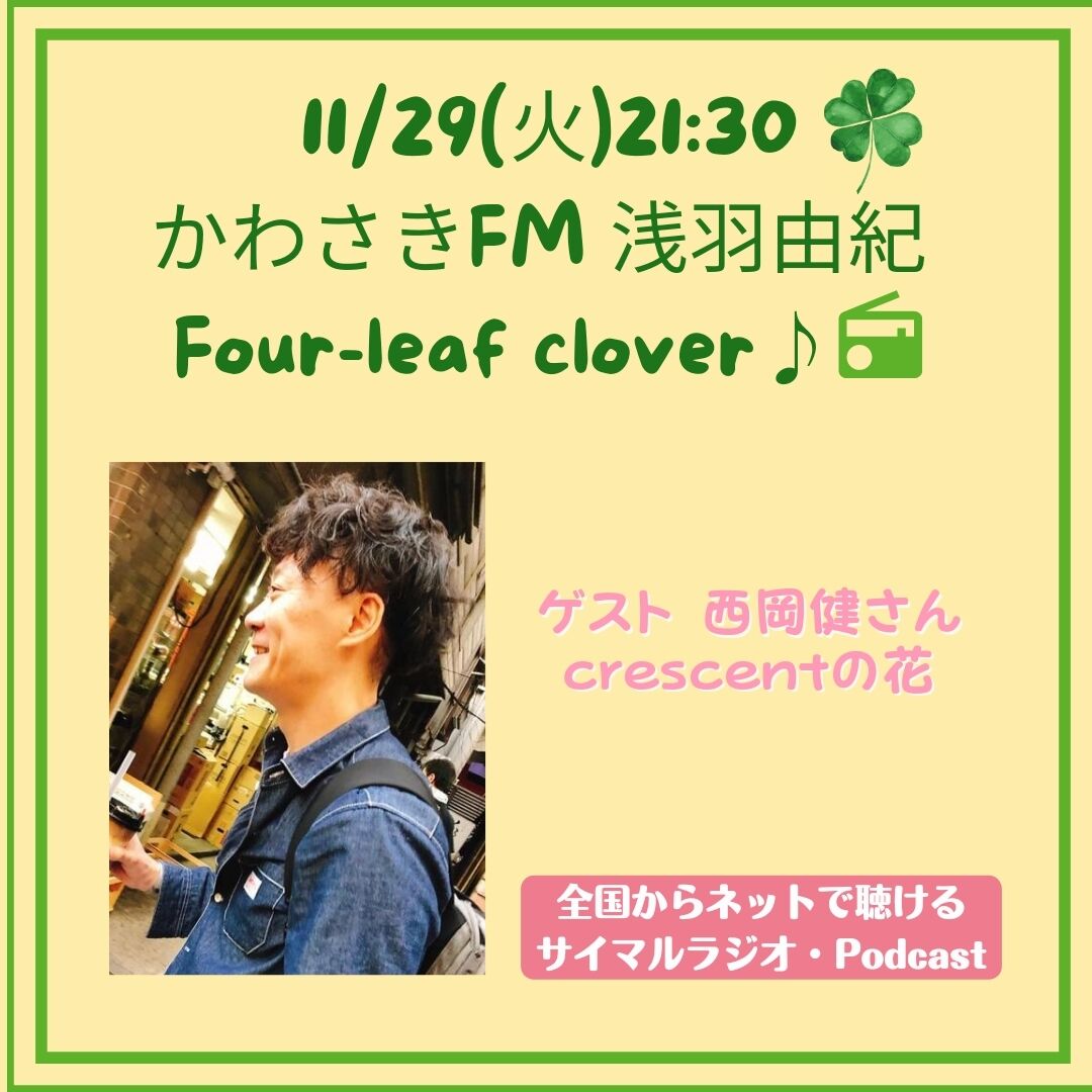 【 今夜★11/29(火)21:30〜FMラジオ放送 】■しかくゲcrescentの花 西岡健さん■しかくかわさきFM『浅羽由紀Four-leaf clover♪』〜ネットで全国から聴けます〜
