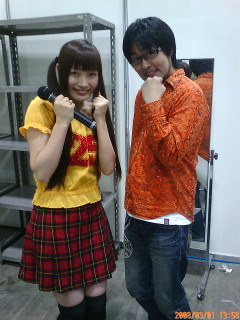 ルーキーの子達をバックに飯塚さんと鷲崎の本番前をパチリ♪